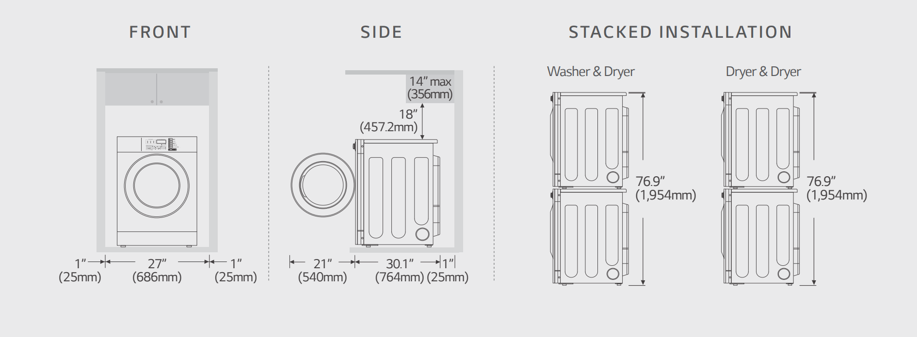 LG professional tumble dryers have the option of being moundted on a washing machine or tumble dryer.