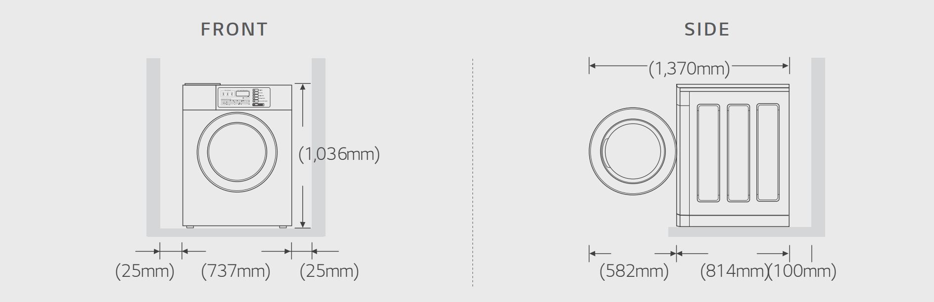 LG professional tumble dryers have the option of being mounted on a washing machine or tumble dryer.