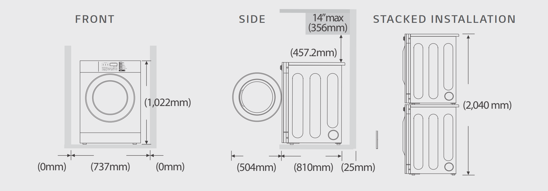 LG professional tumble dryers have the option of being moundted on a washing machine or tumble dryer.